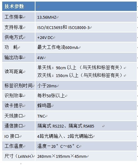 CL341長距離讀寫器是一款增強型高性能電子標簽讀寫器,工作頻率為13.56MHz,分為射頻部分和數(shù)字部分,內(nèi)部有一個存放標簽ID號的緩存區(qū),可防止數(shù)據(jù)丟失,空氣接口執(zhí)行ISO/IEC15693和ISO/IEC18000-3標準。具有讀寫距離遠、性能穩(wěn)定、抗干擾能力強等特點,可廣泛用于生產(chǎn)自動化、物品追蹤、資產(chǎn)管理、產(chǎn)品防偽、開放式門禁考勤等領(lǐng)域。