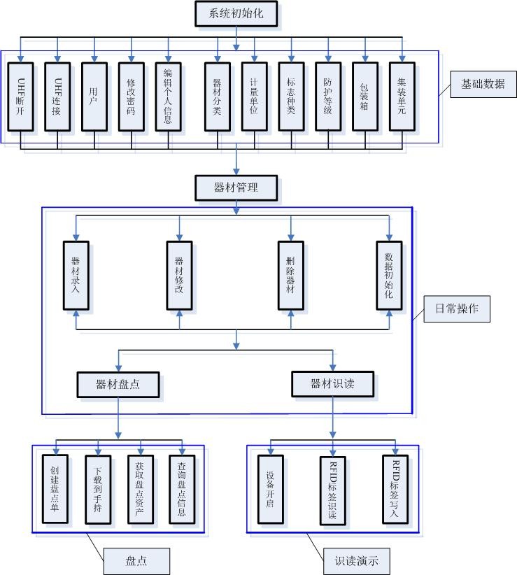 l 器材盤(pán)點(diǎn)、包裝箱盤(pán)點(diǎn)、集裝單元盤(pán)點(diǎn)的方式都是是通過(guò)RFID識(shí)讀標(biāo)簽的方式對(duì)器材、包裝箱、集裝單元進(jìn)行盤(pán)點(diǎn)。