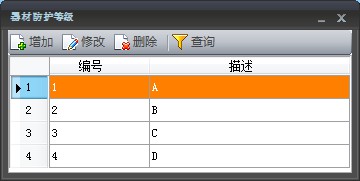 防護(hù)等級(jí)的界面如下,可按需進(jìn)行增加、修改、刪除、查詢(xún)。