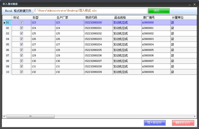l 點(diǎn)擊“導(dǎo)入標(biāo)記行”按鈕將選中的器材導(dǎo)入到本系統(tǒng)中。