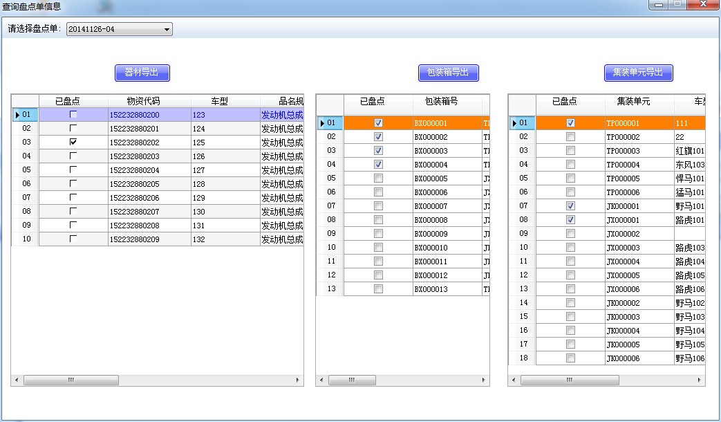 點(diǎn)擊包裝箱,包裝箱盤(pán)點(diǎn)的界面如下: