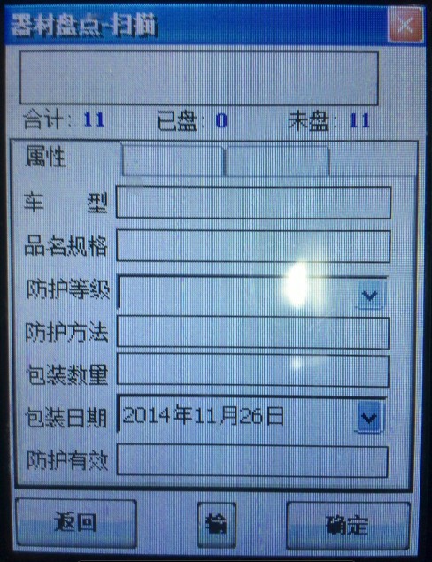 l 掃描器材上的二維碼之后出現(xiàn)如下第一張圖,會(huì)將物資代碼識(shí)讀到上面的輸入框中,然后按下手持鍵盤(pán)左上角的“ok”鍵,會(huì)出現(xiàn)器材的詳細(xì)信息,如下第二張圖點(diǎn)擊界面右下角“確定”按鈕,點(diǎn)擊提示框上的“ok”按鈕保存即可。